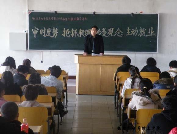 3月5日下午,威尼斯官网在信息楼三共举办了以“审时度势、抢抓机遇、转变观念、主动就业”为主题的2009届毕业生就业指导讲座。学院副书记兼副院长辛智俊老师主讲,团总支、学工办负责人、各毕业班班主任以及全体毕业生参加了讲座。