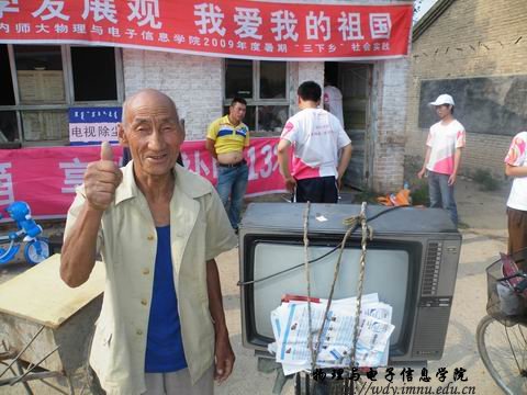 (图:李喜胜大爷带着修好的电视机高高兴兴的回家)