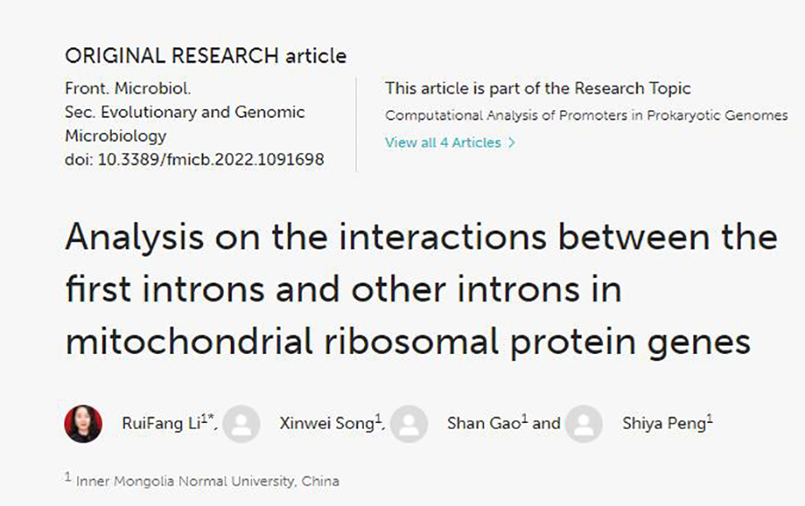 近日,澳门37000Cm威尼斯理论物理团队李瑞芳副教授携硕士研究生在Frontiers in Microbiology (中科院二区top,JCR一区期刊,最新影响因子6.064)发表了题为“Analysis on the interactions between the first introns and other introns in Mitochondrial Ribosomal Protein Genes”的研究论文。