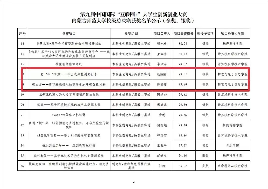 7月4日,第九届“互联网+”大学生创新创业大赛校赛决赛结束,威尼斯官网摘得了三金四银的好成绩,其中“草立方——牧草补光生长方案开拓者”、“碳求真理,碳缩未来”、“'毕力'铜锌践行'碳中和'——新型无机薄膜太阳能电池的应用”获得高教主赛道本科生、研究生创意组金奖,“防'冻'未然——冻土成分检测先行者”、“碳立方——葵花籽壳衍生钠离子电池硬碳负极材料”获得高教主赛道本科生创意组银奖,“'红石榴'科技下乡——坚持21年的助力农业农村现代化公益服务”、“星火燎原——科普教育助力乡村振兴”取得了青年红色筑梦之旅公益组银奖。