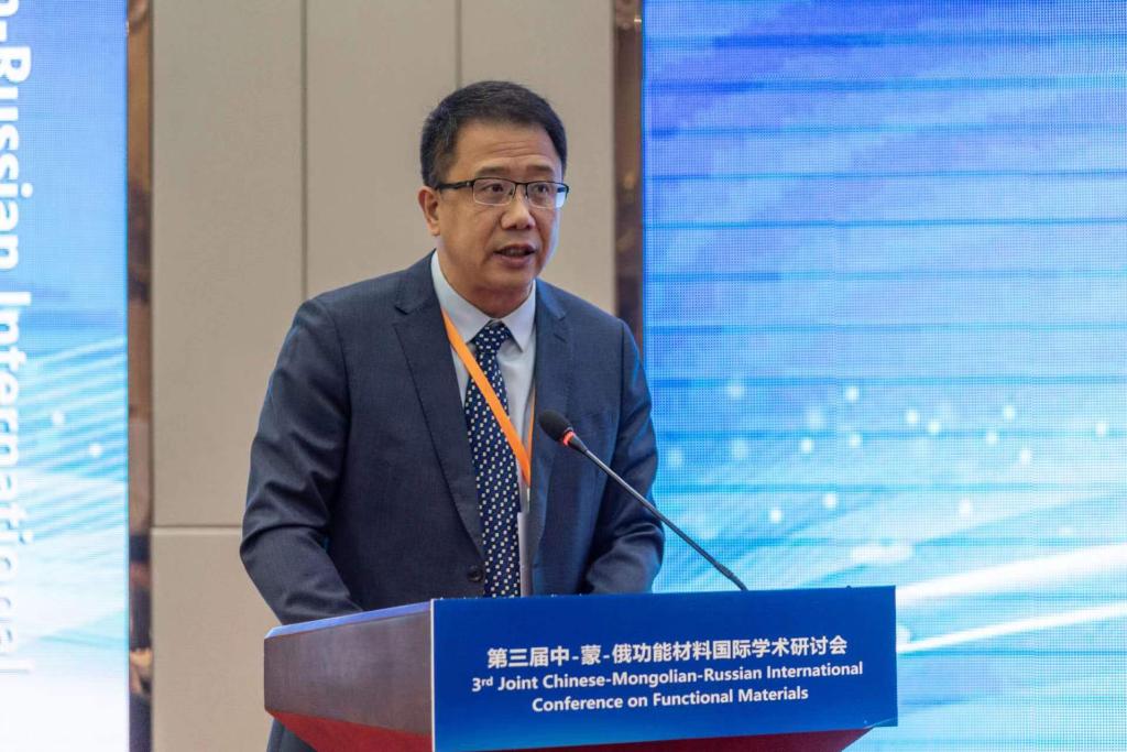 10月14日上午,大会开幕式在呼和浩特市宾悦大酒店会议室举办,开幕式由内蒙古师范大学党委委员、副校长宫箭主持。内蒙古师范大学党委副书记、校长张军代表学校致欢迎辞,向与会的各位代表和嘉宾表示热烈的欢迎,并祝研讨会取得圆满成功。他指出,近年来,学校积极开展材料科学基础研究和应用开发,特别是在功能材料研究上取得了一定成绩,现拥有内蒙古自治区功能材料物理与化学重点实验室,稀土功能与新能源储能材料内蒙古自治区工程研究中心、内蒙古自治区高校新能源储能材料工程研究中心三个省级科研平台,承担多项国家及内蒙古自然科学基金、中央支持地方发展科技计划等关键技术攻关项目,为以科技创新、人才培养落实党中央交给自治区的“五大任务”奠定坚实基础。本次会议重点围绕功能材料科学研究学术前沿,议题丰富,专家云集,希望通过互学互鉴,交流合作,共同助力中蒙俄科技创新深度合作,推动内蒙古自治区经济社会高质量发展。
