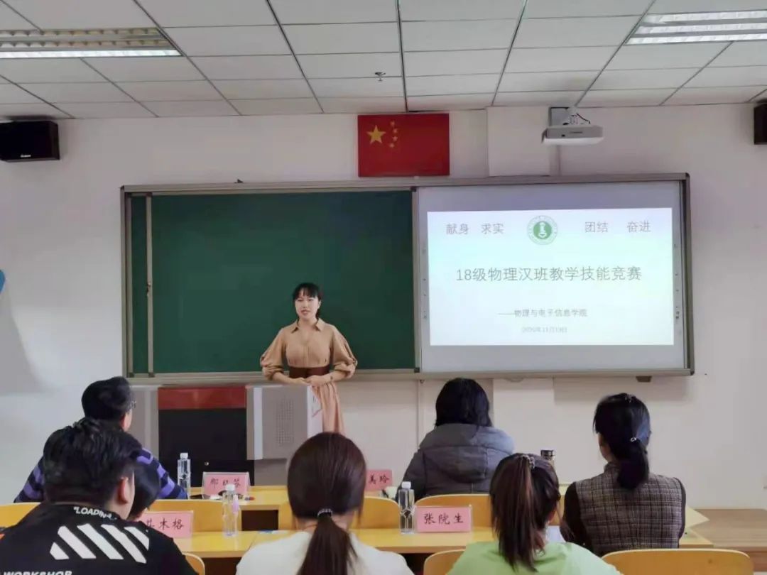 为增强师范生教师技能,传播教育实训的理念,为明年3月份的实习做好准备,18级物理汉班于11月19日下午在理工楼C301举办了教师技能大赛,特邀威尼斯官网党委书记刘美玲、副院长那日苏,包联班级领导石永兴,材料系系主任田晓老师,物理系孙咏萍、张院生、其木格、杨慧老师担任评委。