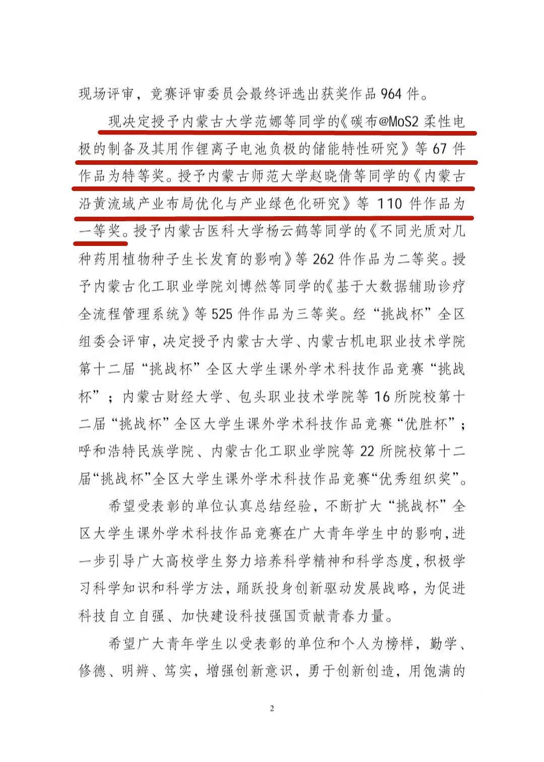 近日,第十二届“挑战杯”全区大学生课外学术科技作品竞赛结果揭晓,由威尼斯官网杨帆、宁君、张珏、李喜斌等教师指导的共11项作品获奖,占全校获奖总数的三分之一。经过决赛,威尼斯官网取得了3个特等奖,3个一等奖,3个二等奖,2个三等奖的好成绩。学院团总支副书记宝力尔荣获“优秀工作者”荣誉称号。