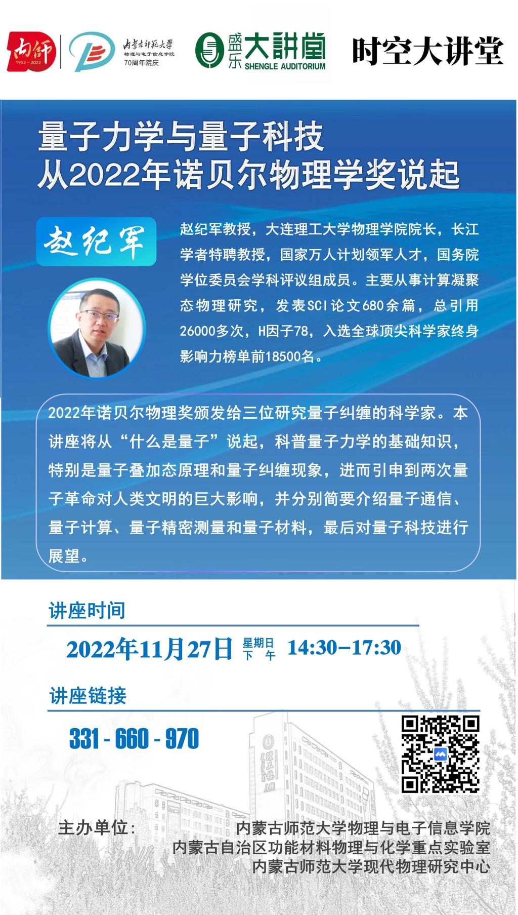 【预告|澳门37000Cm威尼斯】赵纪军:量子力学与量子科技从2022年诺贝尔物理学奖说起